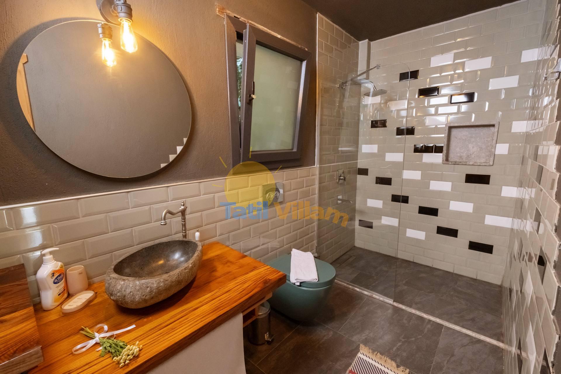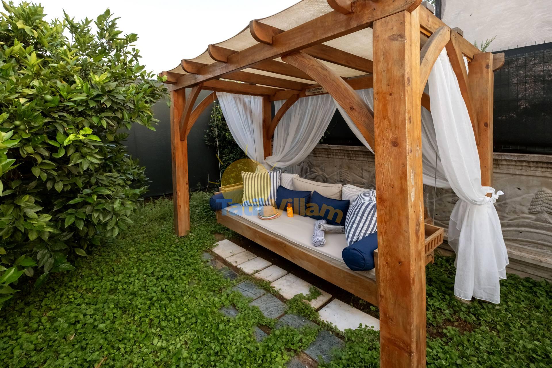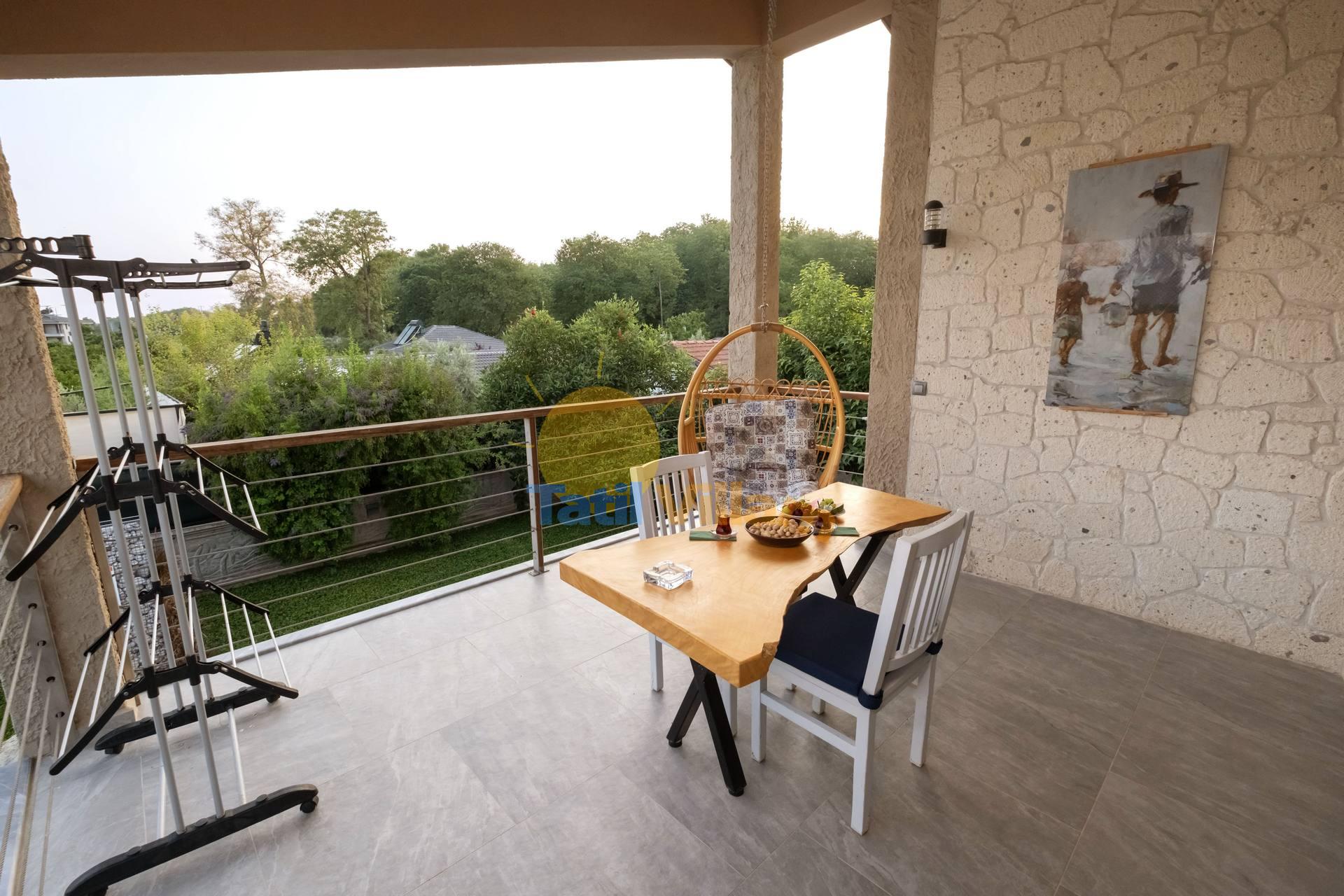 Detayları : 4 adet şezlong, Güneş Şemsiyesi, 4 Kişilik masa ve sandalye, Mangal, Açık duş