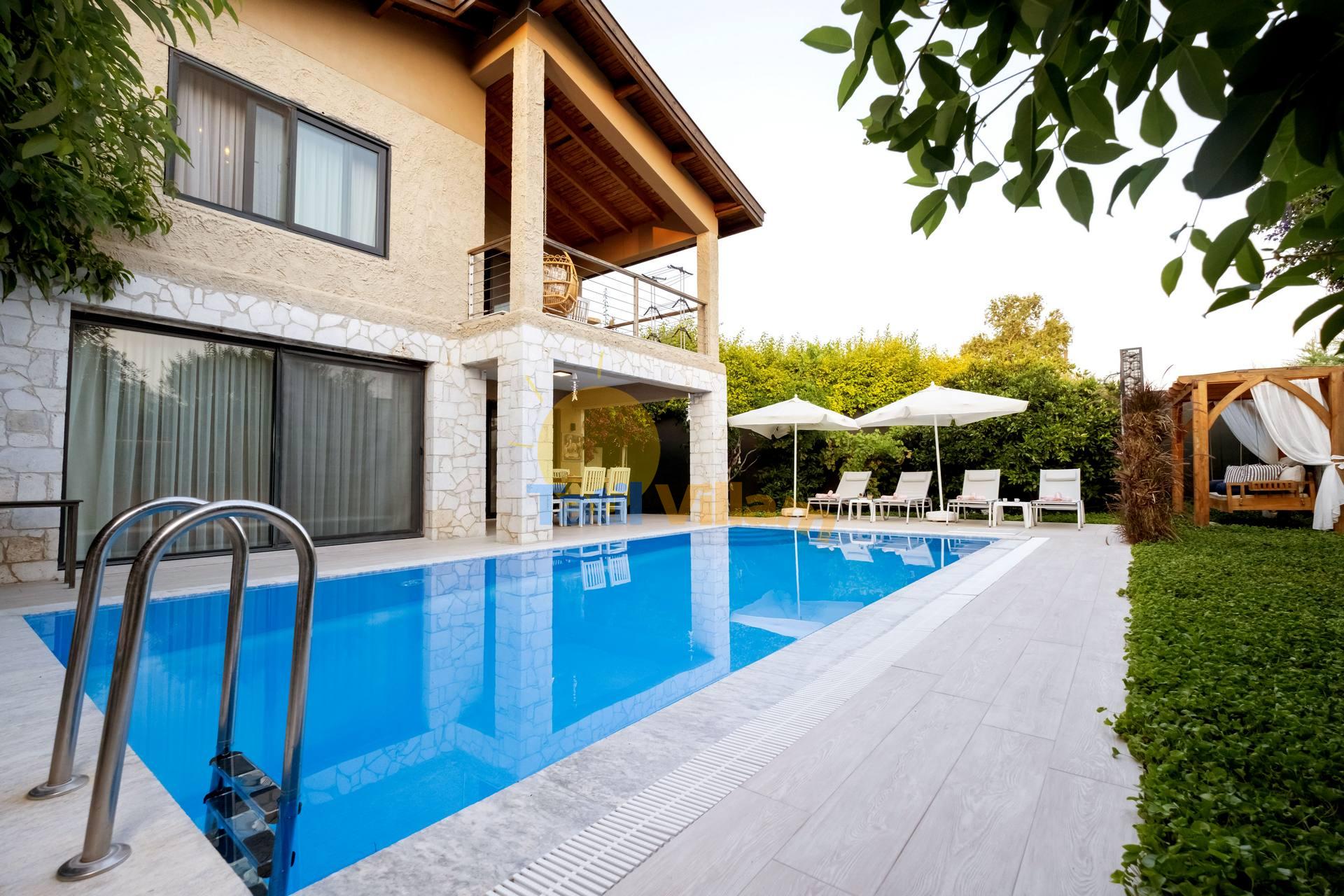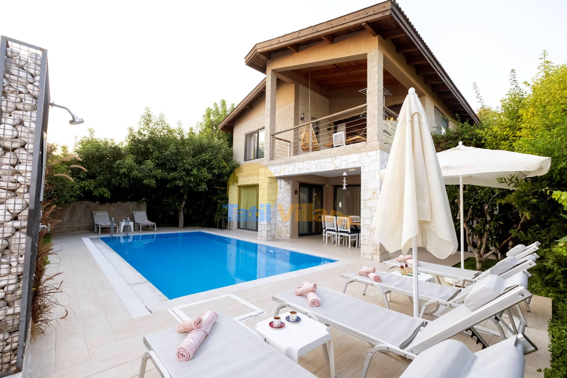 Denize sadece 900 mt. uzaklıkta konumlanmış bu şık villamız, Fethiye Yanıklar bölgesinde yemyeşil portakal ağaçlarının arasında sessiz sakin bir konumda yer alan, 6 kişilik konaklama kapasiteli özel bir villadır. Villamız, özel bahçe, Özel havuz ve ferah kullanım alanlarıyla siz değerli konuklarımız bekliyor.