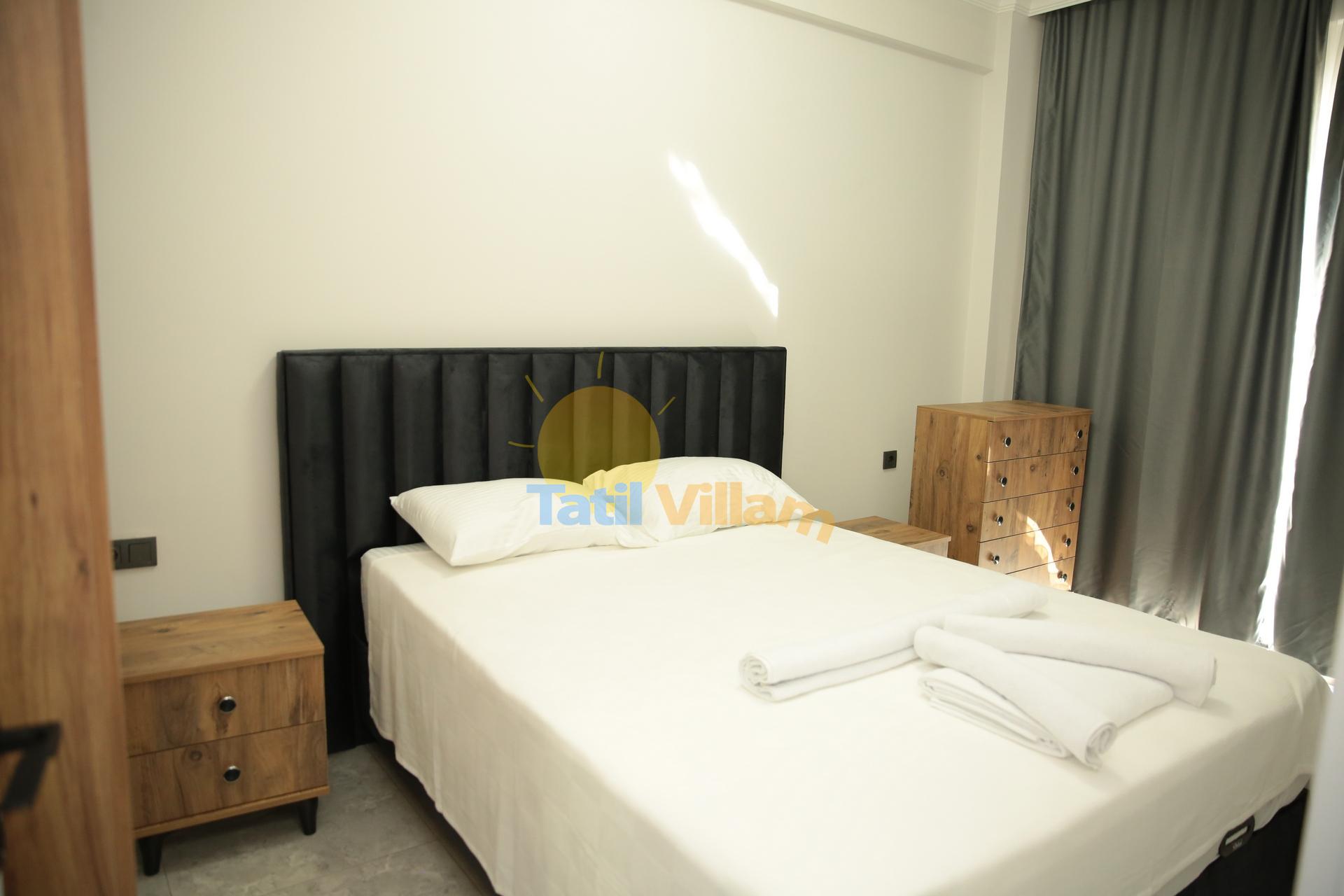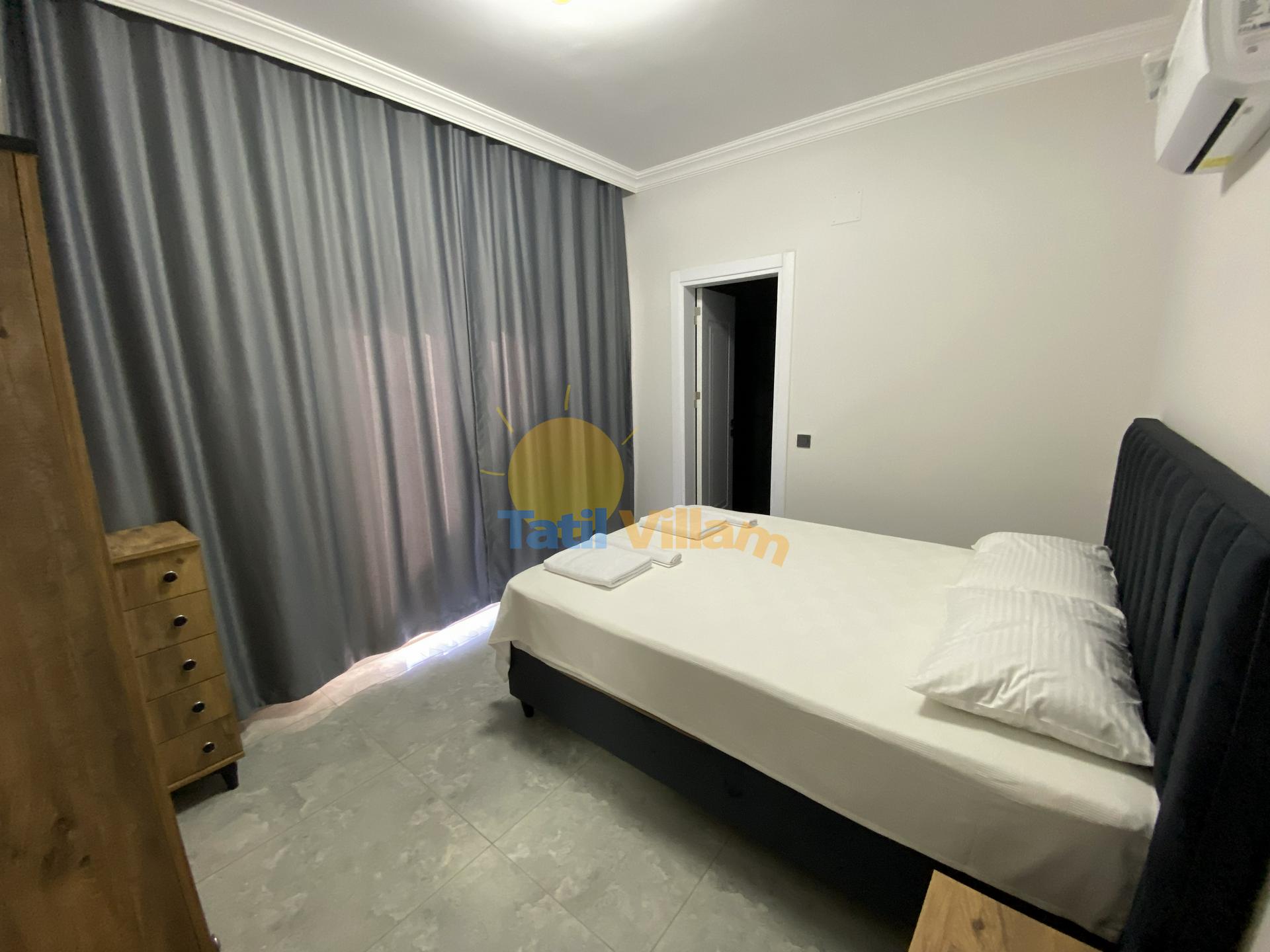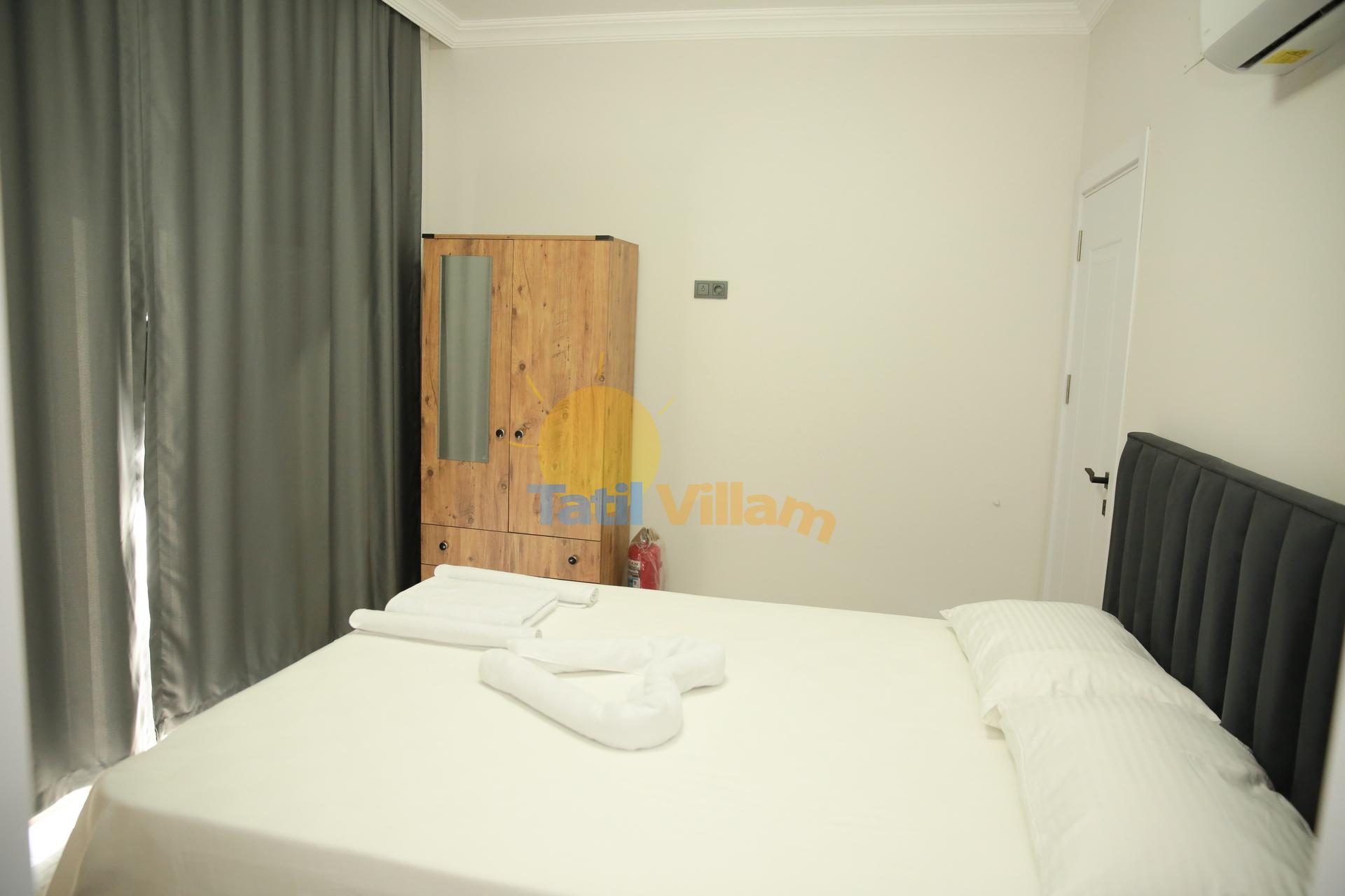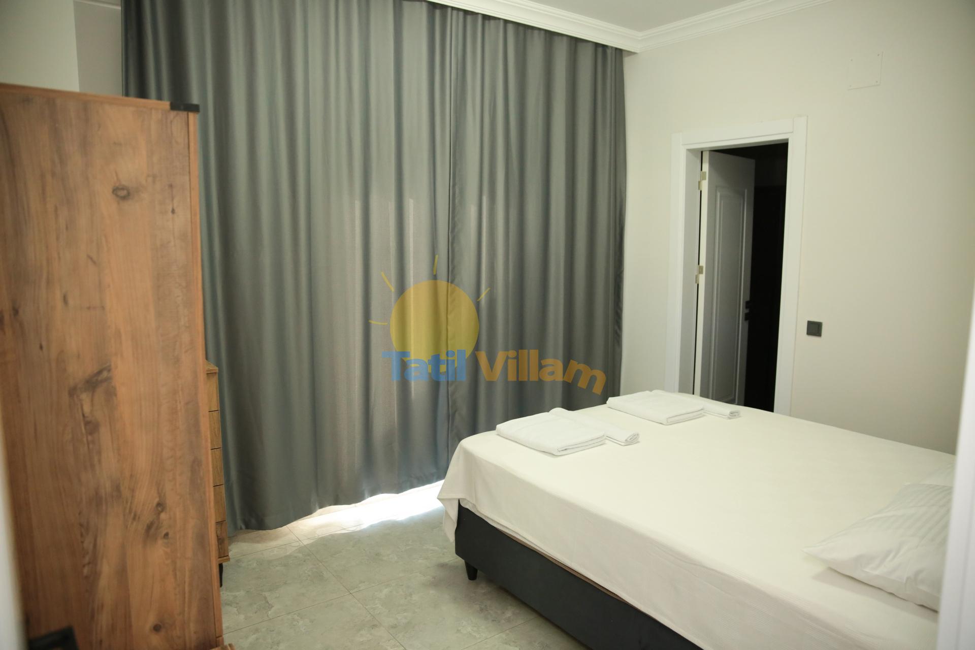 Detayları :Klimalı süit yatak odasıdır. Yatak odası içerisinde 1 adet çift kişilik yatak, şifonyer, 2 adet komodin, elbise dolabı ve ebeveyn banyosu bulunmaktadır.