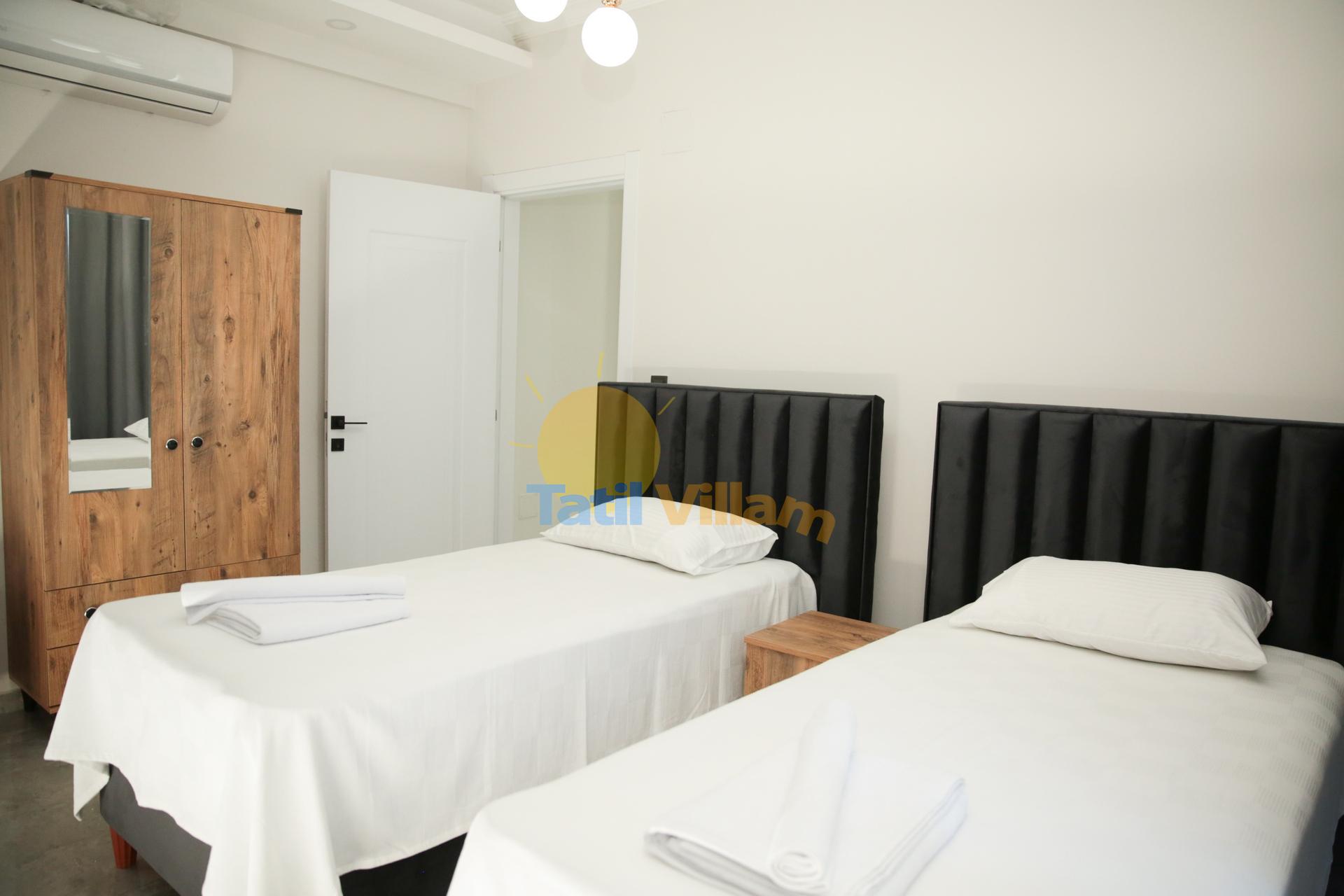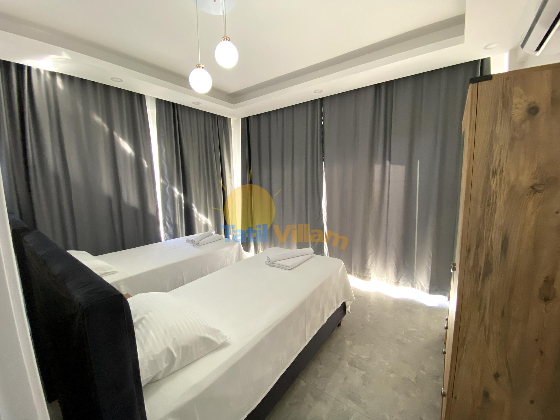 Detayları : Klimalı süit genç yatak odasıdır. Yatak odasında 2 adet tek kişilik yatak, 2 adet komodin, elbise dolabı, ebeveyn banyo – wc vardır.