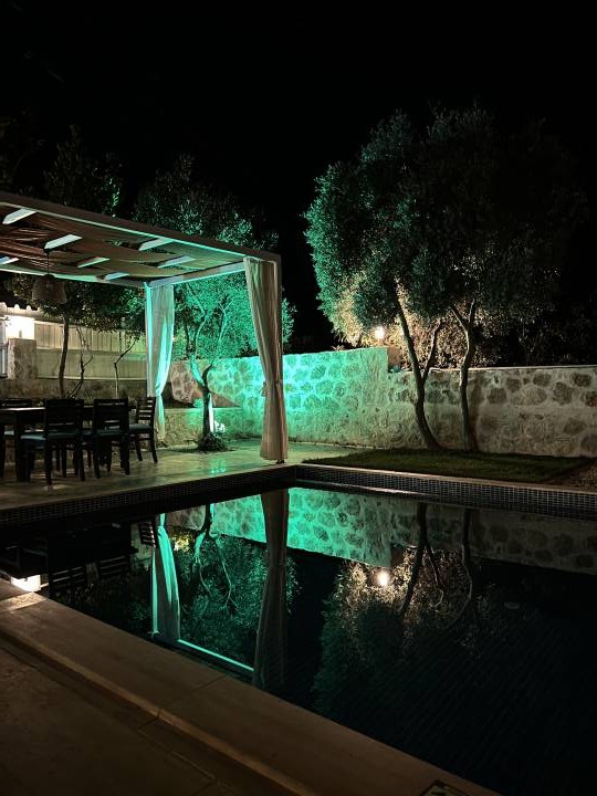 Villamız sessiz, sakin bir bölgede yeşil ve mavinin birleştiği doğal korunaklı bir konumda inşa edilmiştir. Lüks mobilyalarla döşenmiş villamız da iki yatak odası bulunmaktadır. Kalkan merkeze 10 dk. ve Patara Plajına 20 dk. sürüş mesafesindedir. Villamız "Antik Likya Yolu" güzergahında yer almaktadır. Yatak odalarından Patara Plajını ve Akdeniz in eşsiz mavi sularını izleyebileceğiniz villamızın havuzu korunaklı olup, muhafazakar aileler ve balayı çiftleri için oldukça uygundur. Villamız da alarm sistemi mevcuttur. Bu villamız, Villa Yankı , Villa Alisa ve Villa Yalınay ile yakın konumdadır. Birbirine yakın birden fazla villa kiralamak isteyen misafirlerimizin tercih edebileceği villalardandır.